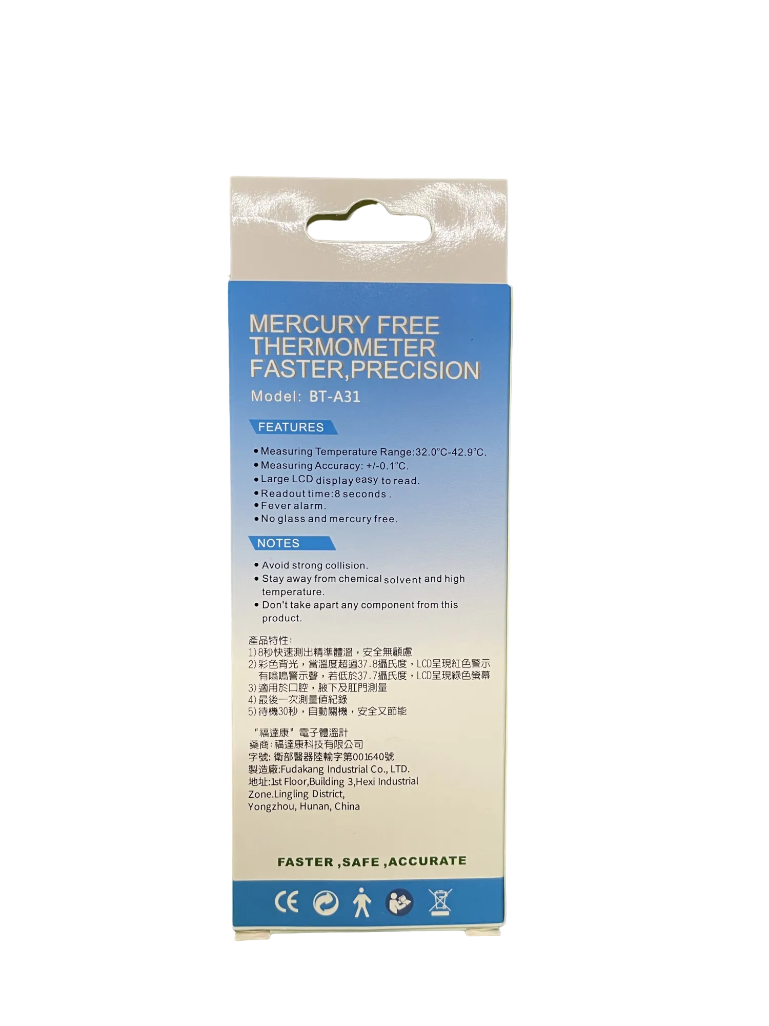 首頁 > 購物車功能 > 產品介紹 > 電子產品 > "福達康"電子體溫計【軟頭大螢幕】BT-A31 陸製